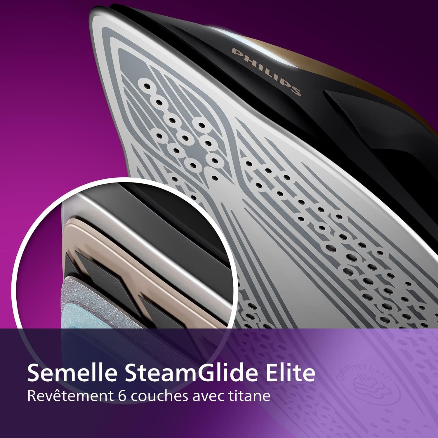 • Technologie OptimalTEMP : Un réglage unique pour tous les types de tissus. Passez de la soie au jean sans attendre et sans changer de température. Zéro risque de brûlure, c’est garanti.