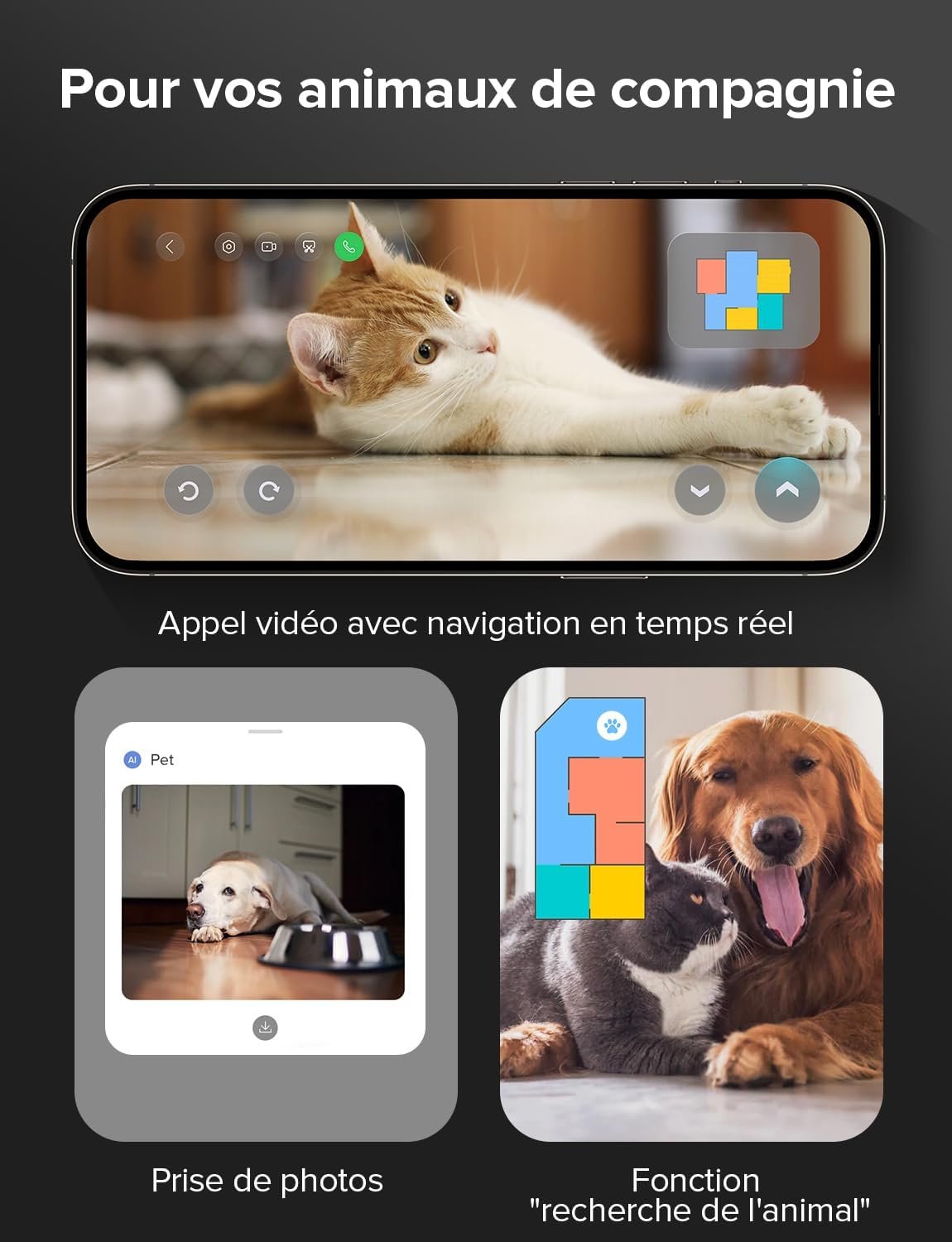 Appels Vidéo et Assistant Vocal : Intégrez votre robot à votre maison connectée. Vous pouvez même l’utiliser pour surveiller votre domicile ou parler à vos animaux via la caméra intégrée.